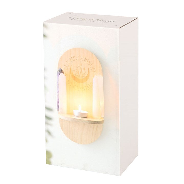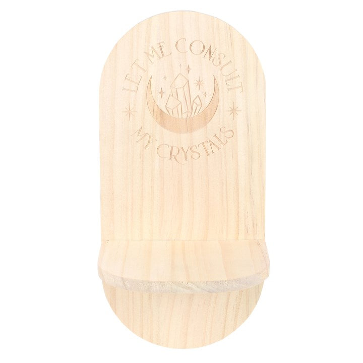 Create a space to recentre and focus with this wooden 'Let Me Consult My Crystals' altar shelf. Display crystals, tarot cards, words of affirmation and other items of spiritual significance to aid in manifesting dreams and goals.