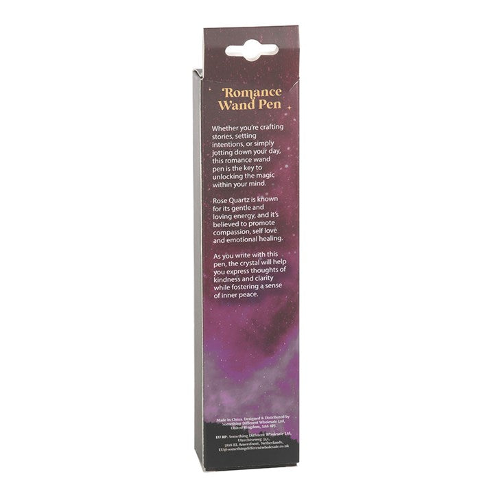 Whether you're crafting stories, setting intentions, or simply jotting down your day, this romance wand pen is the key to unlocking magic within your mind. The pen features a beautifully crafted magic wand design, finished with a genuine rose quartz crystal to promote compassion, self-love and emotional healing. The crystal will help express thoughts of kindness and clarity while fostering a sense of inner peace. Packaged in a matching gift box with moon phase and star designs.